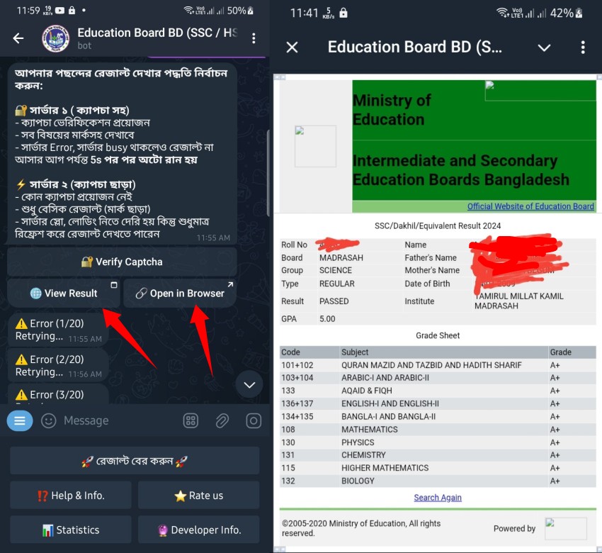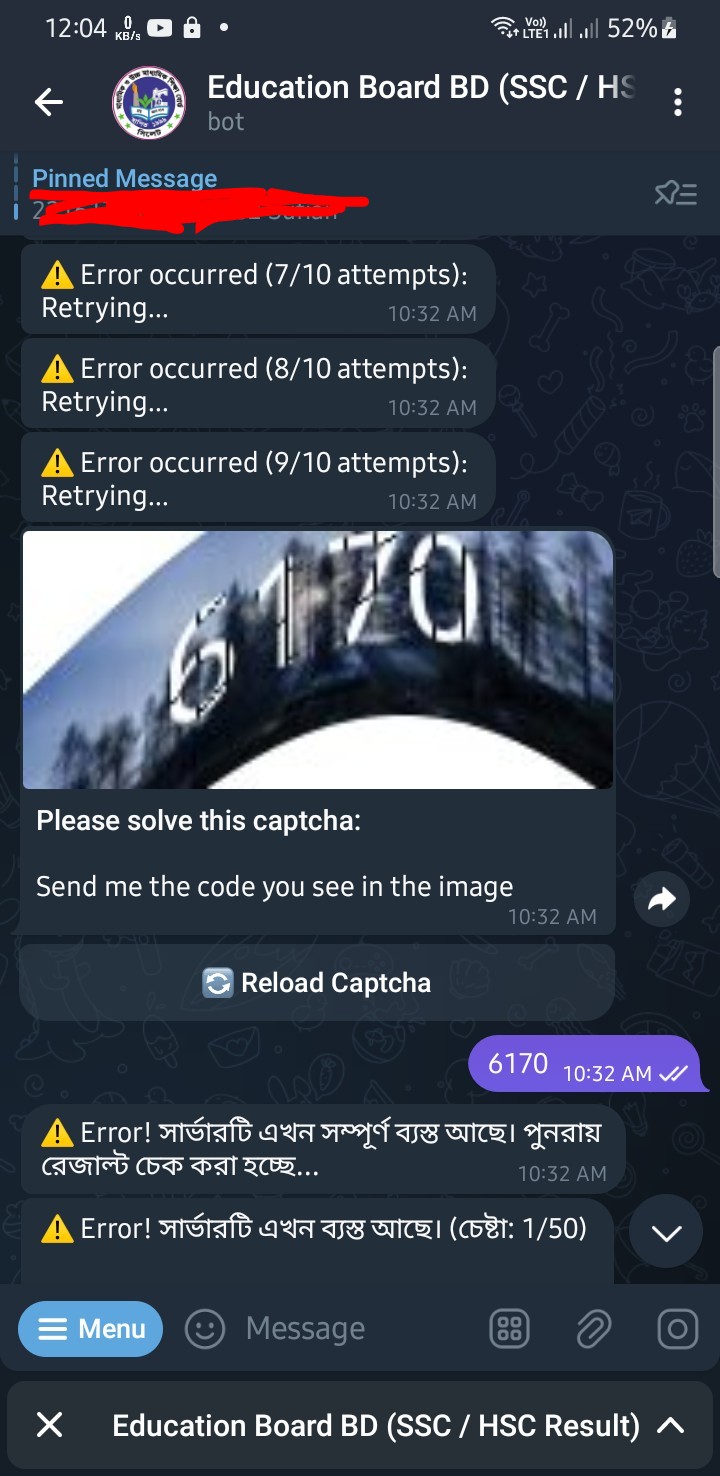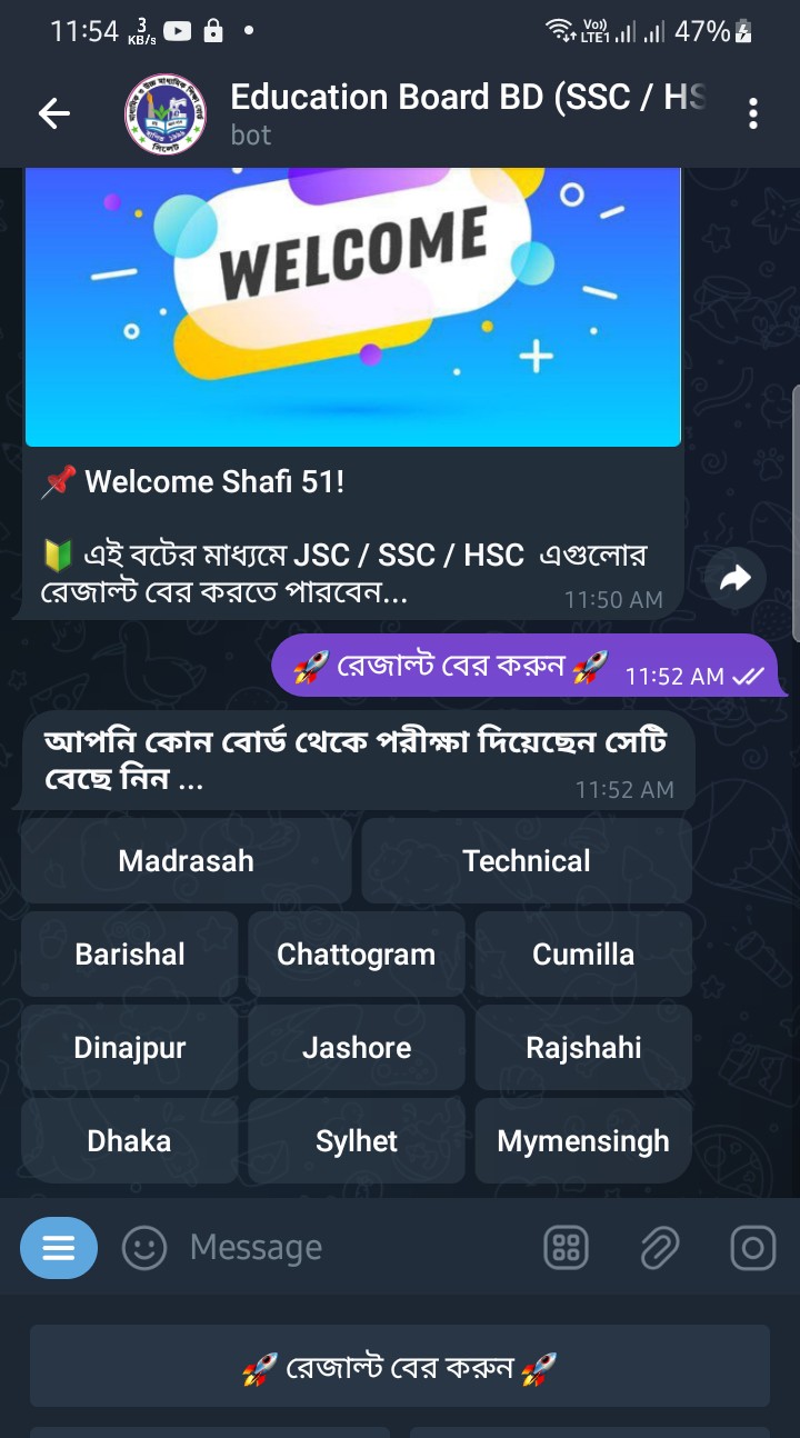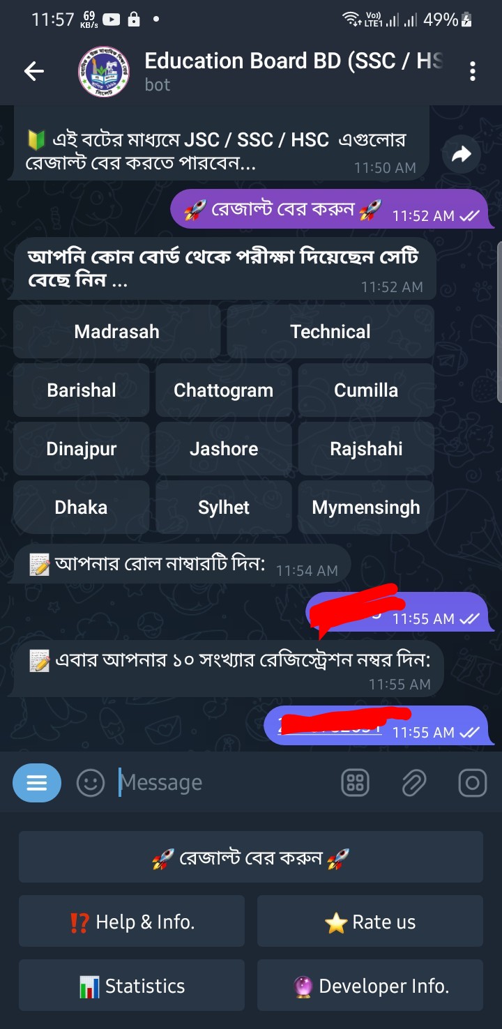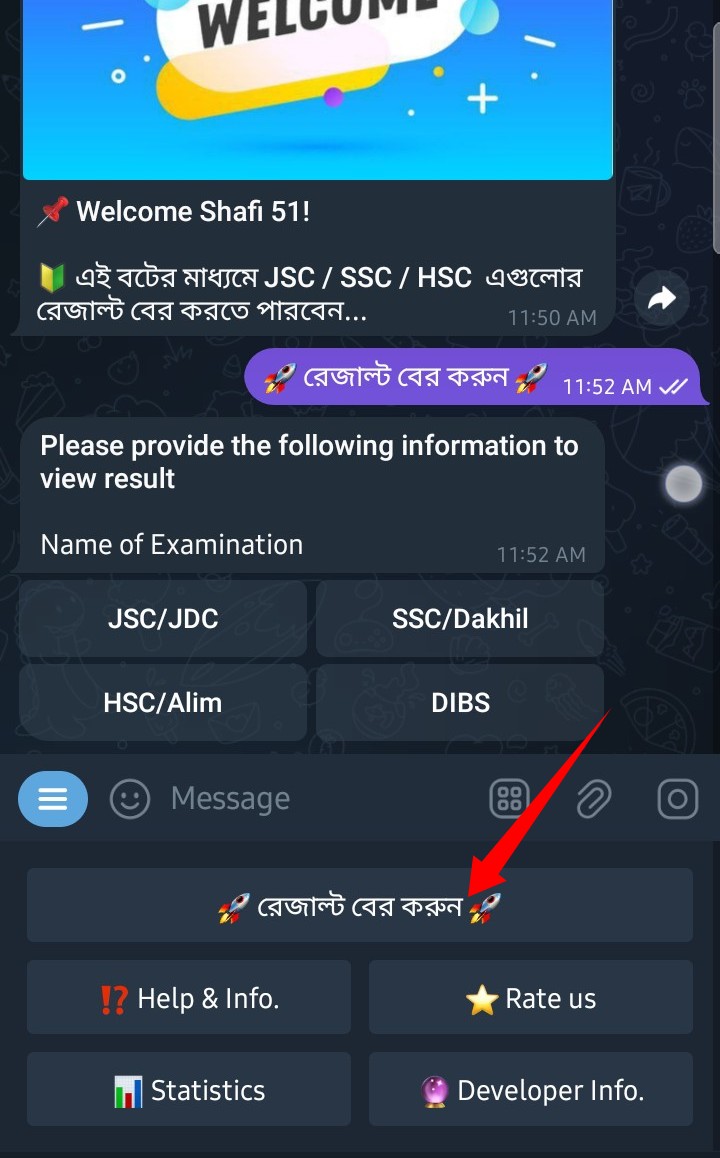 এরপরেও না আসলে, /viewResult লিখে মেসেজ দিন। এভাবে আপনি সার্ভার Busy সমস্যার সমাধান করে, রেজাল্ট সহজেই দেখতে পারবেন